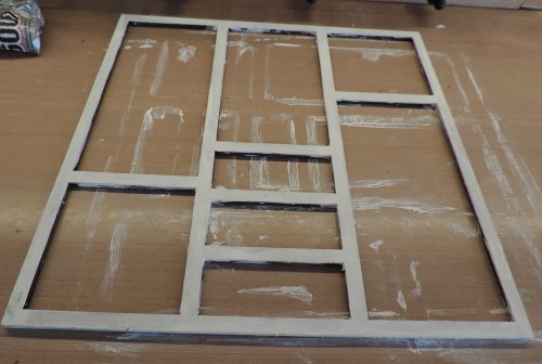 I wanted my panels to be extra deep so I stacked all three pieces up and glued them together. Once glue was dry I added a coat of gesso as a base to insure that my paint color would be true.