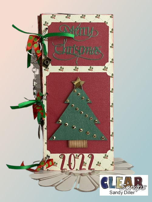 I'm here today to share a Slimline Holiday Album that I created ahead of time so I would be ready to add those photos as soon as I got them printed. I made this album weeks ago but if you are not a plan ahead kinda person you can easily create one now. I used the Chip Regular Slimline Album from Clear Scraps and decorated the front with the tree from the Wood Holiday Collection.