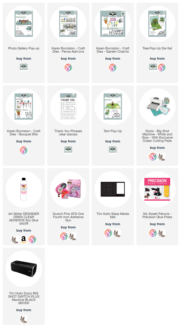 It is Designer Challenge Day, and our theme is "For the Birds". I started with the Photo Gallery Pop-up and then didn't know when to stop. This die set came out last month with the new release and it is so versatile - I replaced the center section with acetate to make it appear that there is an opening to the garden. One of the best things about Karen Burniston die sets is that they all work together. I added lots of different pieces from lots of different die sets - all linked below. It turned out pretty cute - hope you like it.